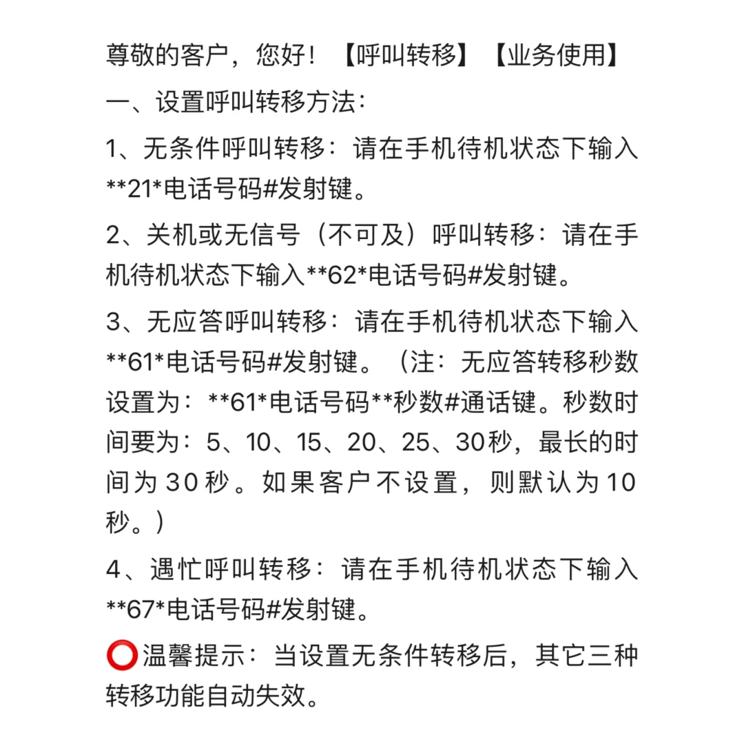 移动号码怎么设置呼叫转移短信提醒移动号码可设置呼叫转移,若希望同时接收短信提醒,可编辑短信指令“**呼叫转移号码**”发送到10086(移动运营商服务号)。设置成功后,所有来电和短信将转移到您指定的号码上,确保不会错过任何重要信息。具体操作可咨询移动客服。... 2025-08-13 - [阅读全文]